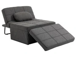 DIMENSIONS DU PRODUIT – Dimensions du canapé: Longueur 85 cm x Largeur 90 cm x Hauteur 85 cm – Dimensions du lit: Largeur 85 cm x Longueur 190 cm x Hauteur 40 cm environ – Hauteur d’assise 40 cm – Charge maximale: 200 kg