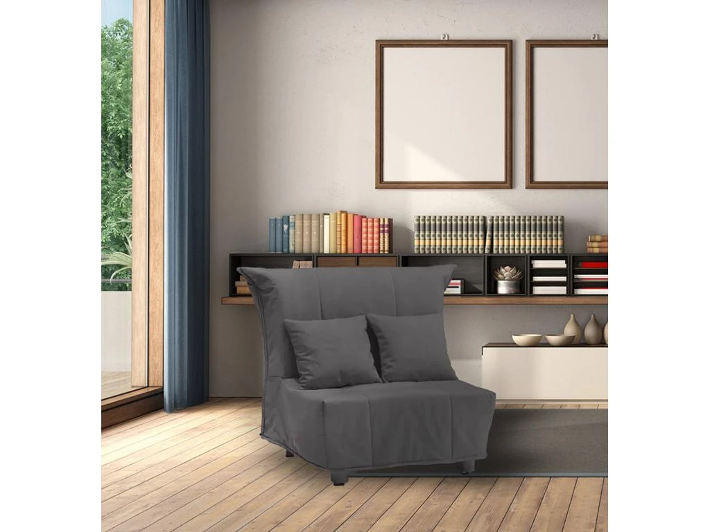RÉSISTANCE ET CONFORT – La structure du produit en fer garantit durabilité, stabilité et résistance dans le temps – Ce CANAPÉ comprend un sommier à lattes électrosoudé, un matelas en polyuréthane expansé indéformable de 10cm de haut et deux coussins décoratifs de 40x40cm – Le revêtement est dans un tissu polyester gris doux et délicat, entièrement déhoussable et lavable en machine jusqu’à 30 degrés – Le tissu matelassé assure douceur au toucher et sérénité pendant le sommeil – D’un simple mouvement ce canapé devient un lit pratique et le rembourrage devient une couette confortable.