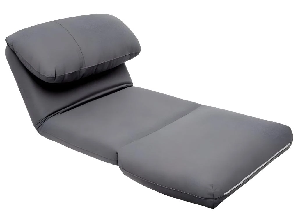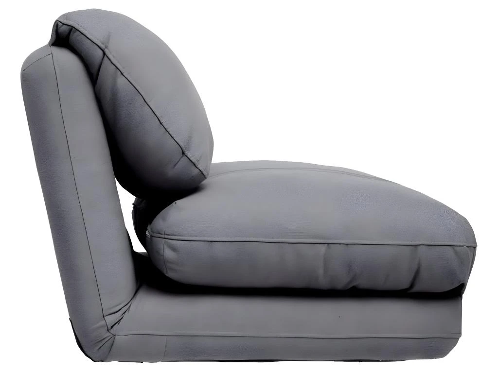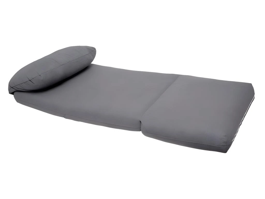 Enveloppe en tissu et coussin garni de coton. Assise d’une hauteur de 26 cm. Se déplie pour former un lit 209 x 78 x 58 cm, convenant pour un adulte ou un enfant.