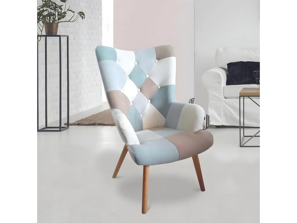 Fauteuil Motif Patchwork Bleu et Gris de la gamme Damas.