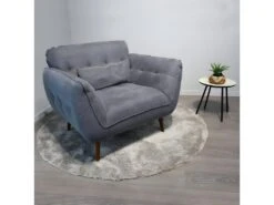 Fauteuil CapitonnĂ© Tissu Gris ChinĂ© Et Piètement Ă©vasĂ© En Bois – GALY