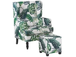 Fauteuil Bergère En Velours Vert Avec Repose-pieds Assorti SANDSET