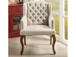 Fauteuil Bergère Theodore à Oreilles Style Louis XV Tissu Beige