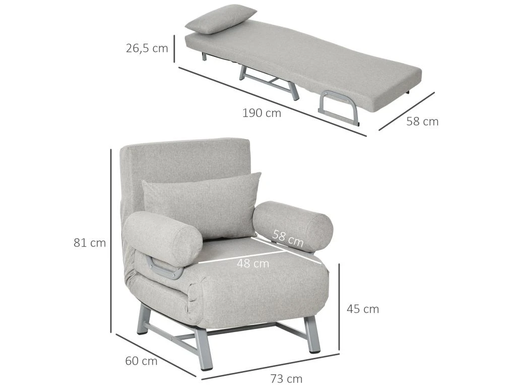 – Dim. position lit : 190L x 58l x 26,5H cm