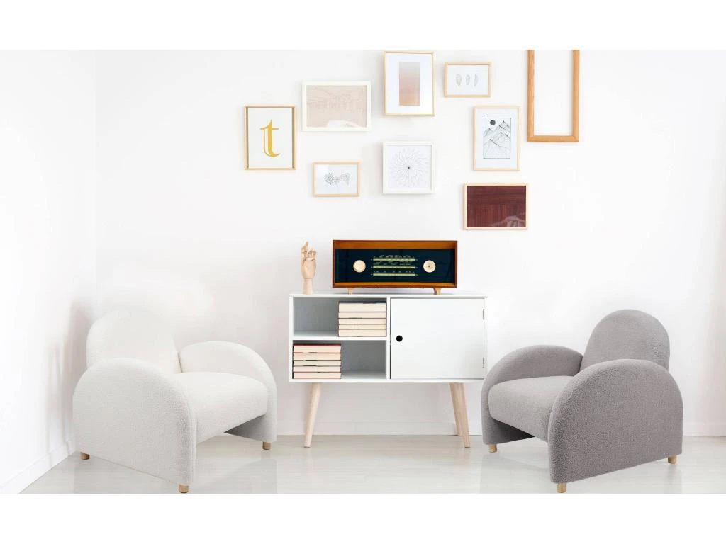 Découvrez le fauteuil BOWIE, un fauteuil original, à l allure chic et élégante qui pourra s intégrer à n importe quelle décoration intérieure. Que votre séjour soit moderne ou bohème, ce fauteuil club au revêtement de tissu bouclette trouvera sa place dans votre pièce pour vous fournir une assise confortable et décorative.