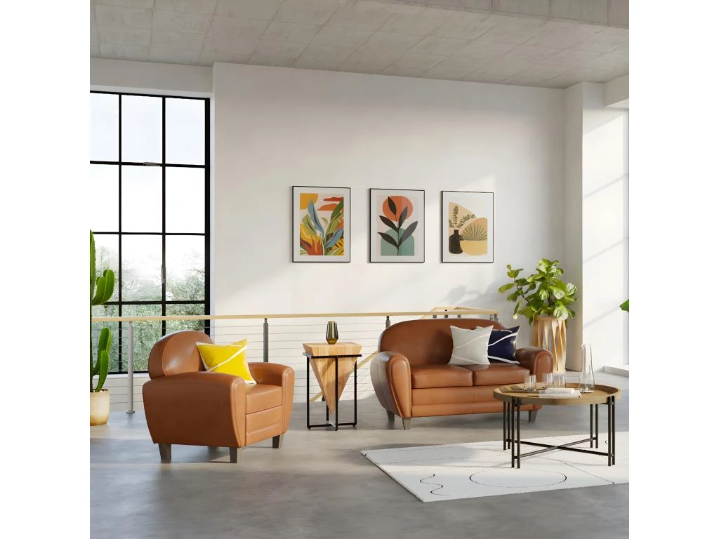 Une assise profonde avec un double coussin, un dossier tout en rondeur, de larges accoudoirs et un look vieilli, oui, le fauteuil Club camel allie tout simplement l’élégance au confort !