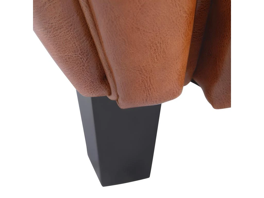 Matière dossier, assise et accoudoirs : Cuir Bycast, croüte de cuir pigmentée enduite d’un film protecteur en polyuréthane ce qui lui donne un aspect comparable à la fleur de cuir, brillant.