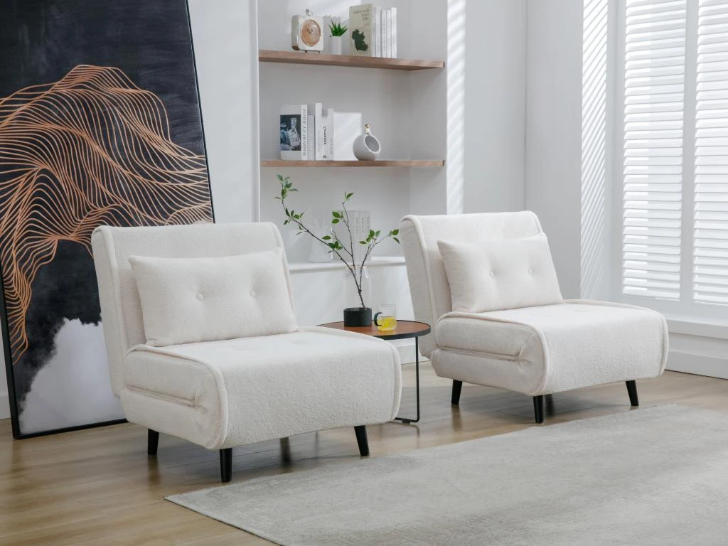 Vous souhaitez meubler votre foyer avec ingĂ©niositĂ© ? Alors, n’hĂ©sitez pas et sautez le pas ! Optez pour les canapĂ©s 2 places et fauteuils convertibles en tissu bouclette ivoire URIBIA et vous passerez vos nuitĂ©es Ă Â rĂŞver. Assortis d’un coussin additionnel Ă effet capitonnĂ©, ils apporteront davantage de confort et de sĂ©rĂ©nitĂ© !Â