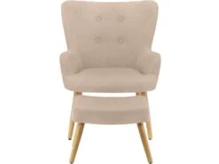 Chaise D’appoint RembourrĂ©e Avec Tabouret En Microfibre Crème