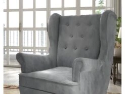 Fauteuil 1 Place En Tissu Velours Catégorie Luxe, Gris, ARNAUD