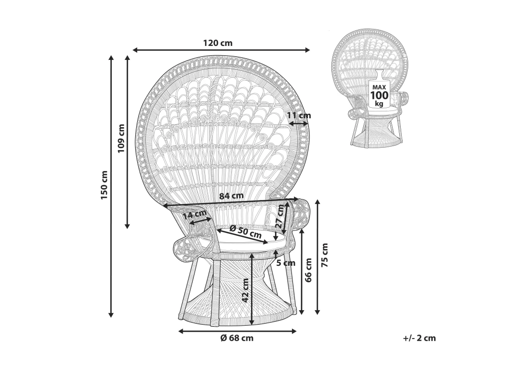 Surface d`assise: 50×50 cm