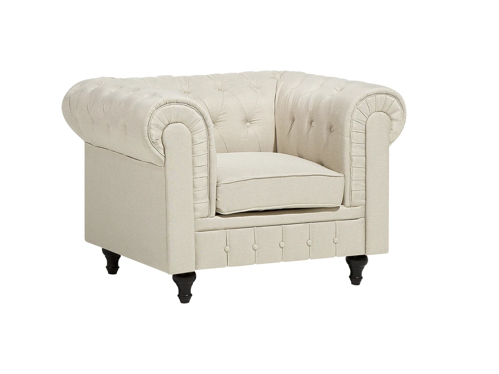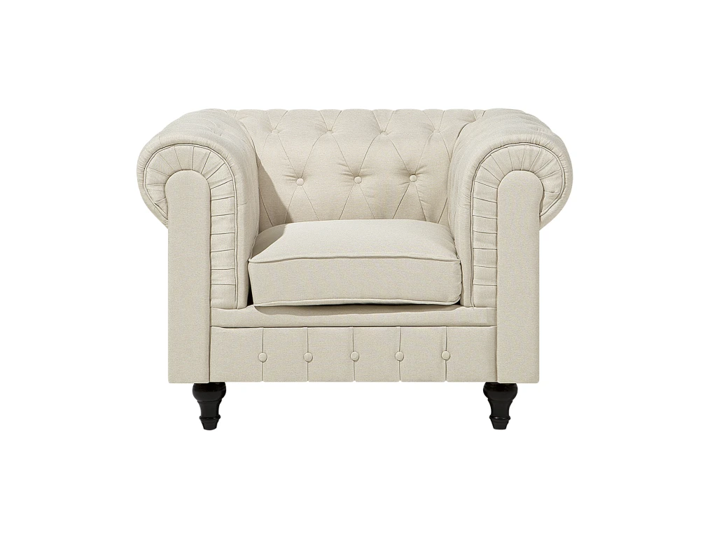 Fauteuil Capitonné Tissu Gris Chiné Et Piètement évasé En Bois – GALY