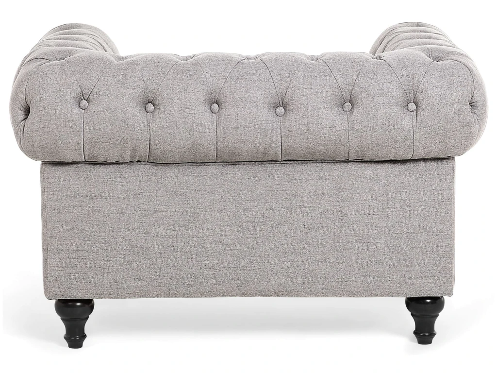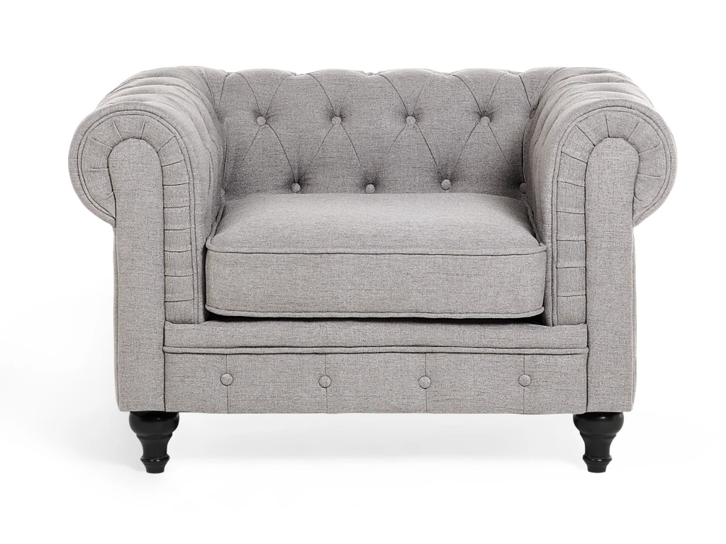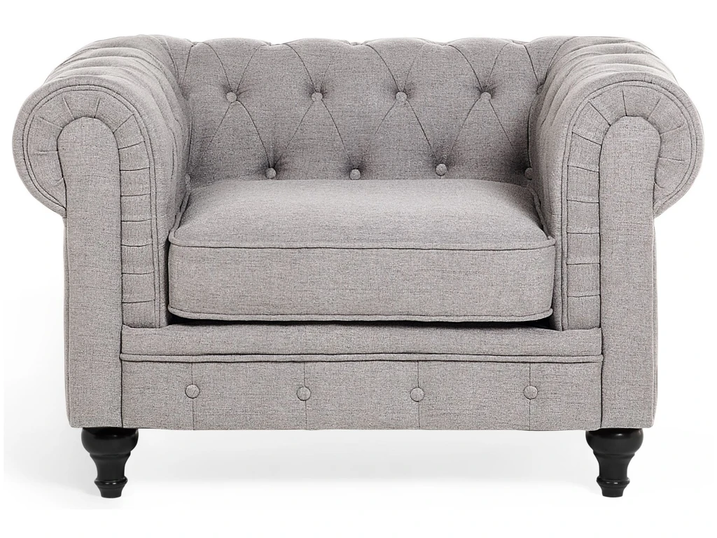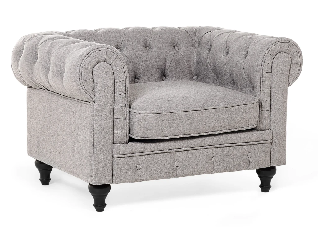 Fauteuil Capitonné Tissu Gris Chiné Et Piètement évasé En Bois – GALY