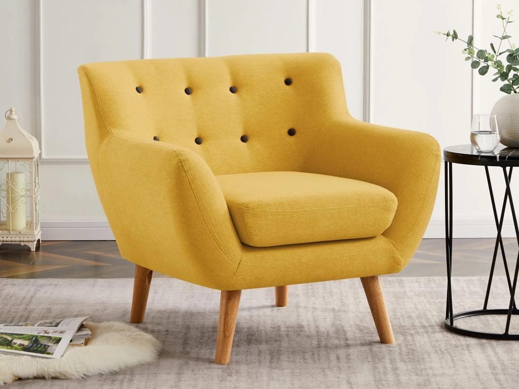 Envie d’une ambiance scandinave qui sorte de l’ordinaire ? Les canapĂ©s et fauteuils SERTI II sont faits pour vous. Avec leur revĂŞtement en tissu, leurs pieds en bois et leurs boutons dĂ©co vous aurez le salon d’inspiration nordique dont vous rĂŞvez tant.Â