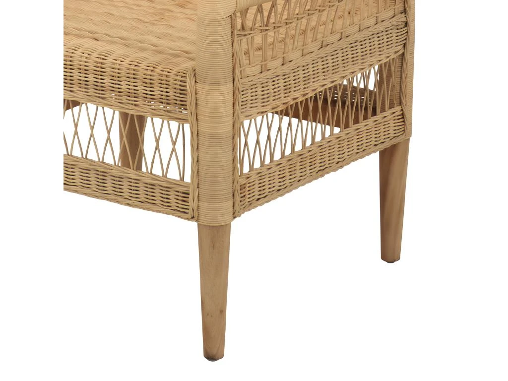 Fabriqué à partir de matériaux de qualité supérieure, le fauteuil Medan en rotin est à la fois souple et résistant. Les accoudoirs confortables et les pieds en bois de teck confèrent une touche supplémentaire de confort. Ce fauteuil en rotin est le choix parfait pour une soirée détente entre amis ou pour un moment de lecture au coin du feu.