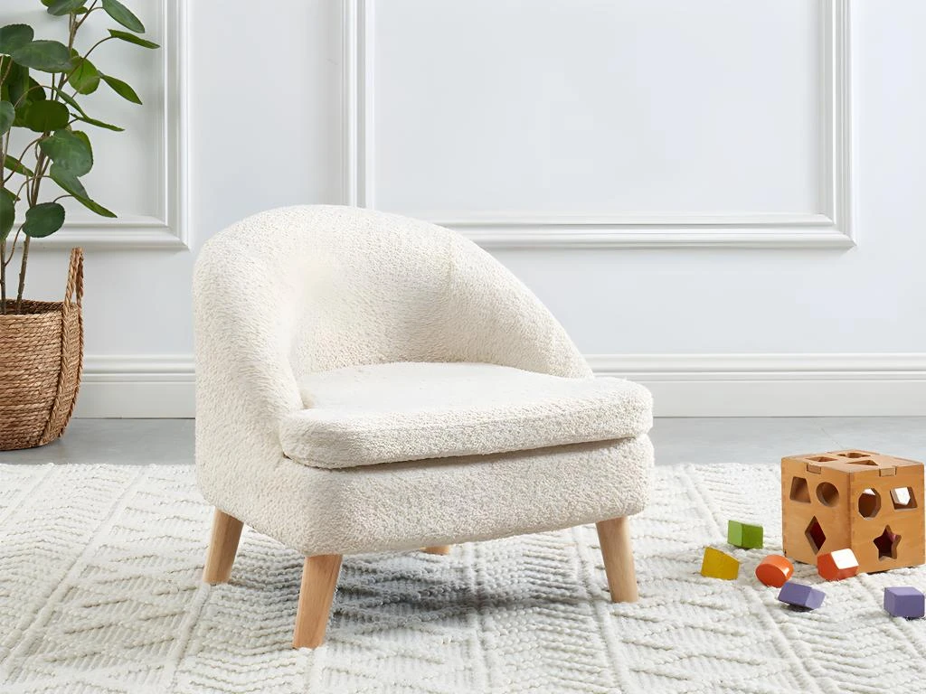 Votre enfant ne mĂ©rite-t-il pas lui aussi de profiter du confort et de la douceur du tissu bouclette ? Ce fauteuil sera idĂ©al pour apporter une note de dĂ©co moderne dans une chambre d’enfant. Avec son tissu bouclette et ses pieds en bois il apportera une touche scandinave dans votre intĂ©rieur.