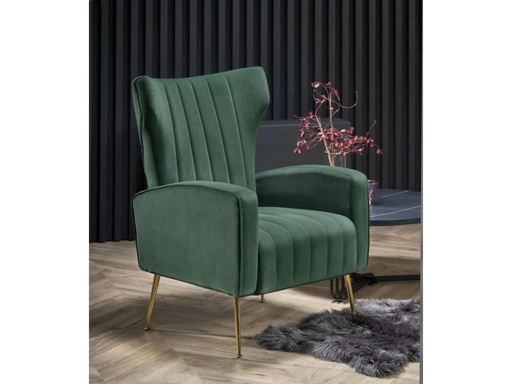 Fauteuil Bergère En Velours Vert Avec Repose-pieds Assorti SANDSET