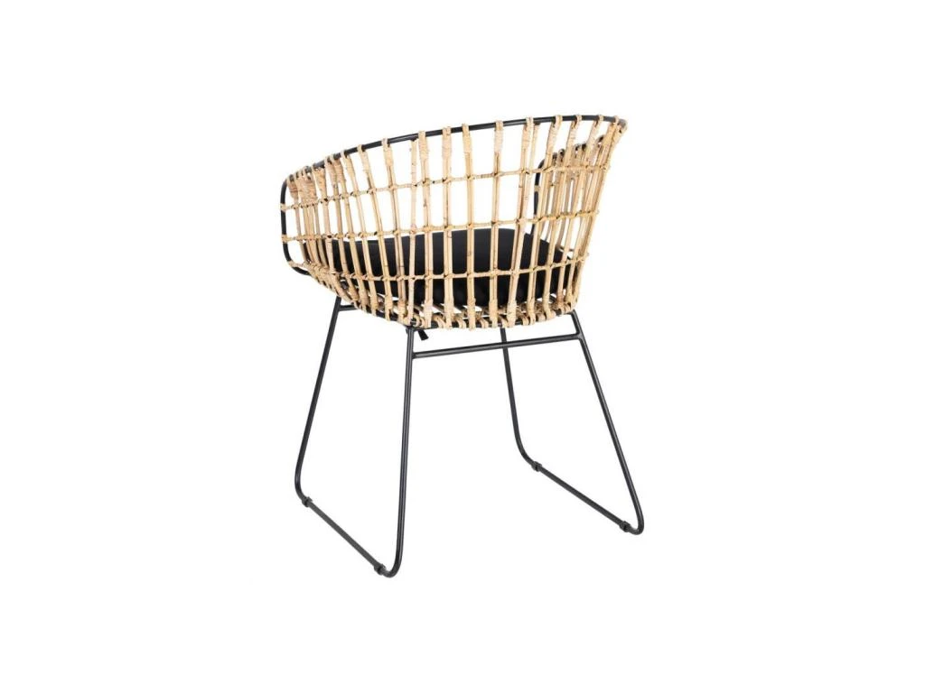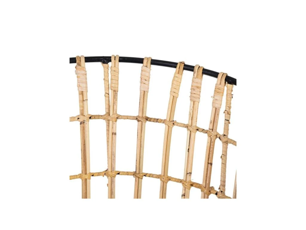 La structure en métal soutient efficacement une coque réalisée en rotin teinte naturelle pour un design intemporel et une légèreté visuelle du plus bel effet.
