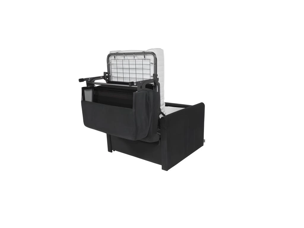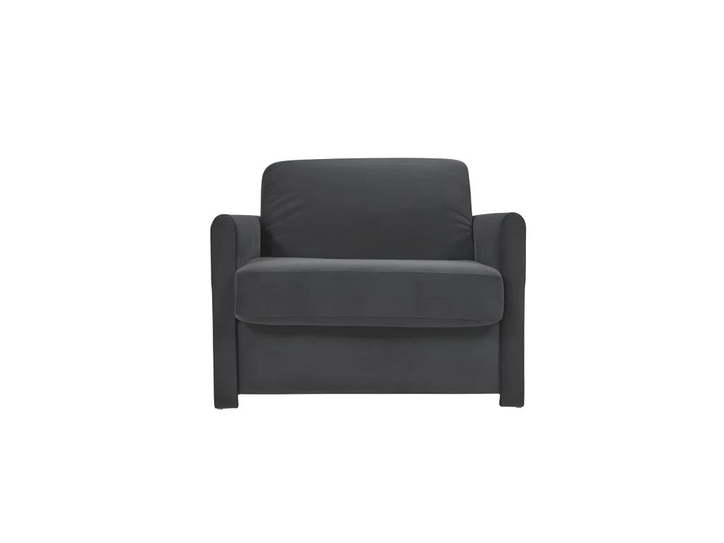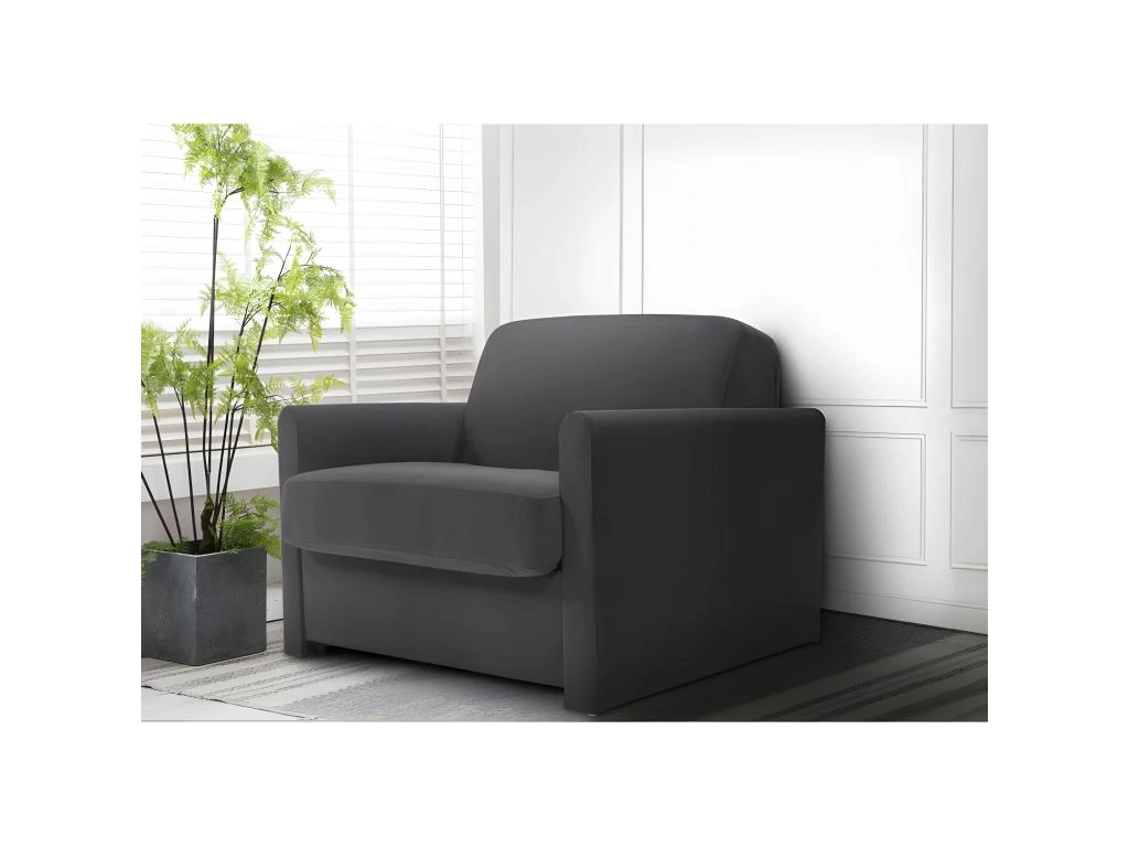 Prenez place dans le fauteuil convertible gris anthracite, 100% fabriqué en France, et détendez-vous ! Avec ses dimensions généreuses, ses coussins de dossier et d’assise moelleux, vous profiterez de son confort dans toutes les situations. En effet, grâce à sa fonction convertible révolutionnaire par basculement du dossier, technologie Rapido®Alpha, vous accédez rapidement à un lit 1 place (90cm) équipé d’un matelas DUNLOPILLO de 15 cm d’épaisseur pour vous garantir des nuits agréables et réparatrices.